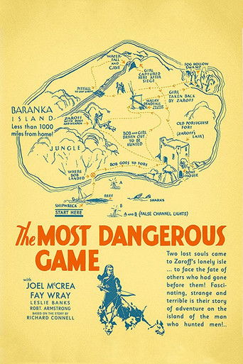 When legendary hunter Bob Rainsford is shipwrecked on the perilous reefs surrounding a mysterious island, he finds himself the guest of the reclusive and eccentric Count Zaroff. While he is very gracious at first, Zaroff eventually forces Rainsford and two other shipwreck survivors, brother and sister Eve and Martin Towbridge, to participate in a sadistic game of cat and mouse in which they are the prey and he is the hunter.