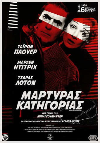 When Leonard Vole is arrested for the sensational murder of a rich, middle-aged widow, the famous Sir Wilfrid Robarts agrees to appear on his behalf. Sir Wilfrid, recovering from a near-fatal heart attack, is supposed to be on a diet of bland, civil suits—but the lure of the criminal courts is too much for him, especially when the case is so difficult.