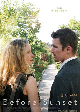 Nine years later, Jesse travels across Europe giving readings from a book he wrote about the night he spent in Vienna with Celine. After his reading in Paris, Celine finds him, and they spend part of the day together before Jesse has to again leave for a flight. They are both in relationships now, and Jesse has a son, but as their strong feelings for each other start to return, both confess a longing for more.