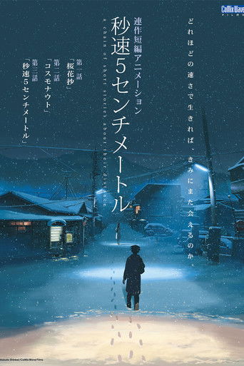 Three moments in Takaki's life: his relationship with Akari and their forced separation; his friendship with Kanae, who is secretly in love with him; the demands and disappointments of adulthood, an unhappy life in a cold city.